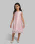 SLEEVELESS A-LINE DRESS. ROUND NECKLINE WITH A CLEAN, MINIMAL SILHOUETTE. SOFTLY STRUCTURED FABRIC THAT FALLS INTO A RELAXED A-LINE SHAPE. DECORATIVE FLORAL APPLIQUÉ TRIM ALONG THE HEM IN SOFT PASTEL TONES. LIGHTWEIGHT DESIGN IDEAL FOR ELEGANT DAYTIME AND SPECIAL OCCASION STYLING.